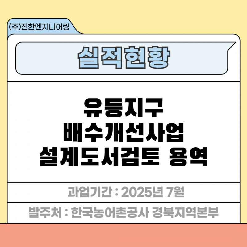 유등지구 배수개선사업 설계도서검토 용역 페이지 정보 작성자 최고관리자 작성일25-12-01 17:43 조회20회 관련링크 이전글 다음글 목록 답변 본문 세부분야 : 설계도서검토 발주처 : 한국농어촌공사 경북지역본부 과업기간 : 2025년 7월 유등지구 배수개선사업 설계도서검토 용역 이전글 다음글 목록 답변