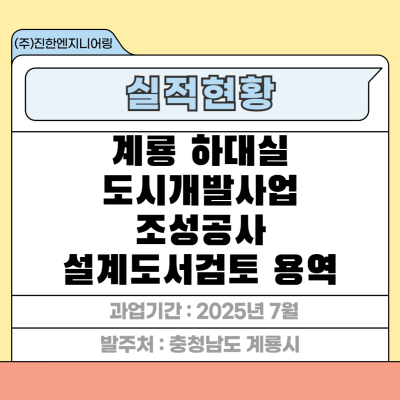 계룡 하대실 도시개발사업 조성공사 설계도서검토 용역 페이지 정보 작성자 최고관리자 작성일25-12-01 17:44 조회22회 관련링크 이전글 다음글 목록 답변 본문 세부분야 : 설계도서검토 발주처 : 충청남도 계룡시 과업기간 : 2025년 7월 계룡 하대실 도시개발사업 조성공사 설계도서검토 용역 이전글 다음글 목록 답변