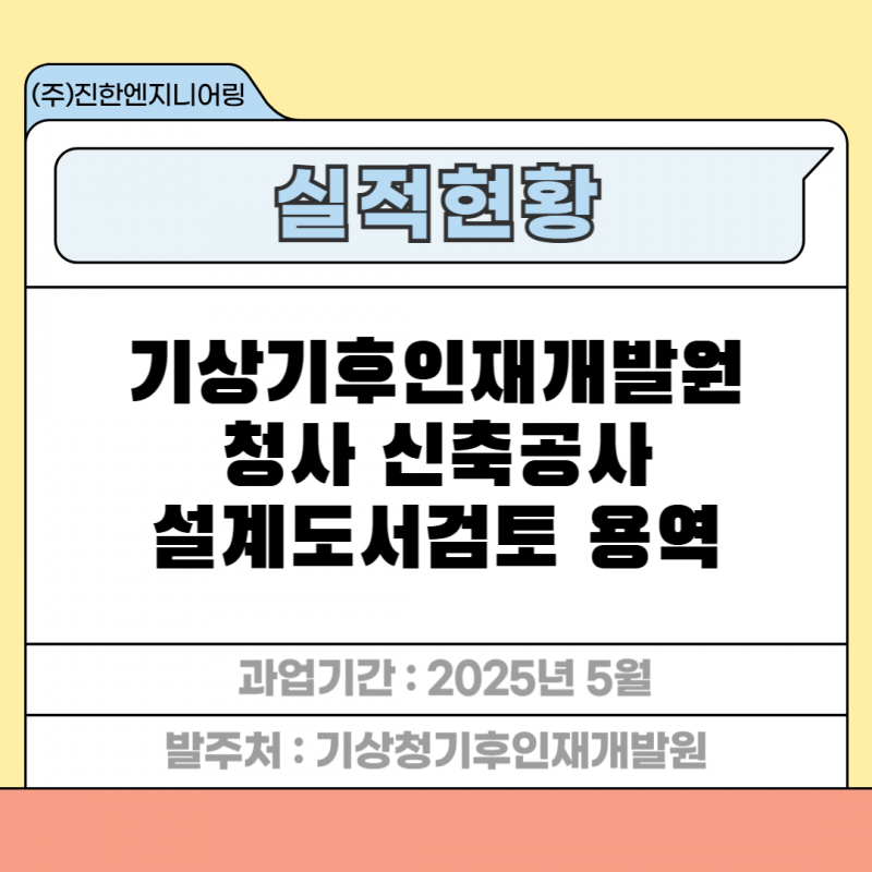 기상기후인재개발원 청사 신축공사 설계도서검토 용역 페이지 정보 작성자 최고관리자 작성일25-09-16 13:38 조회51회 관련링크 이전글 다음글 목록 답변 본문 세부분야 : 건축 발주처 : 기상청기후인재개발원 과업기간 : 2025년 5월 기상기후인재개발원 청사 신축공사 설계도서검토 용역 이전글 다음글 목록 답변