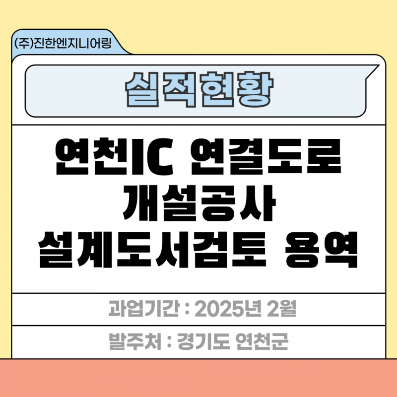 연천IC 연결도로 개설공사 설계도서검토 용역 페이지 정보 작성자 최고관리자 작성일25-03-04 17:55 조회61회 관련링크 이전글 다음글 목록 답변 본문 세부분야 : 도로 발주처 : 경기도 연천군 과업기간 : 2025년 2월 연천IC 연결도로 개설공사 설계도서검토 용역 이전글 다음글 목록 답변