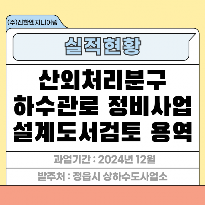 산외처리분구 하수관로 정비사업 설계도서검토 용역 페이지 정보 작성자 최고관리자 작성일25-03-04 17:31 조회48회 관련링크 이전글 다음글 목록 답변 본문 세부분야 : 상하수도 발주처 : 정읍시 상하수도사업소 과업기간 : 2024년 12월 산외처리분구 하수관로 정비사업 설계도서검토 용역 이전글 다음글 목록 답변