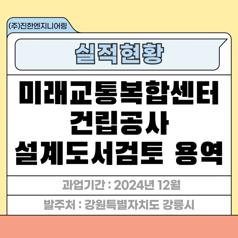 미래교통복합센터 건립공사 설계도서검토 용역 페이지 정보 작성자 최고관리자 작성일25-03-04 17:25 조회41회 관련링크 이전글 다음글 목록 답변 본문 세부분야 : 건축 발주처 : 강원특별자치도 강릉시 과업기간 : 2024년 12월 미래교통복합센터 건립공사 설계도서검토 용역 이전글 다음글 목록 답변